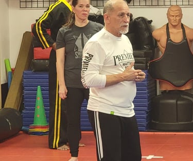 At the January Ladies Self Defense Seminar, Grand Master Al Garza shared the necessity of Full Body Sponsorship when employing self defense. Any arms strike, for example, requires a step or pivot to incorporate hip movement, therefore transferring the maximum amount of force to the fist, palm, fingers, or elbow. You can also lower your center of mass to transfer full body weight into a strike.